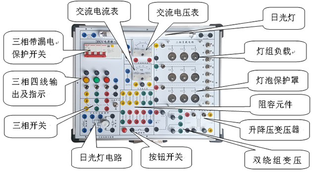 交流電路實(shí)驗(yàn)箱 主要是進(jìn)行"電工學(xué)""電路原理"中的強(qiáng)電部分實(shí)驗(yàn),如單相交流電路、三相電路、日光燈電路實(shí)驗(yàn)。本實(shí)驗(yàn)箱由模塊單元和元件庫相結(jié)合的板面構(gòu)成,全部采用歐洲標(biāo)準(zhǔn)的安全插座和安全實(shí)驗(yàn)導(dǎo)線, 連線方便,接觸可靠,而且壽命長、效率高,有效預(yù)防觸電隱患。實(shí)驗(yàn)面板上印有元件符號及主要參數(shù)便于學(xué)生識別。實(shí)驗(yàn)箱結(jié)構(gòu)緊湊實(shí)用直觀,安全可靠,能有效培養(yǎng)學(xué)生的動手能力,維修方便、簡捷?蓾M足各類高、中等院校及職業(yè)技術(shù)類院校開設(shè)的電工典型實(shí)驗(yàn)。