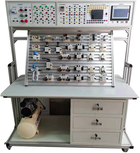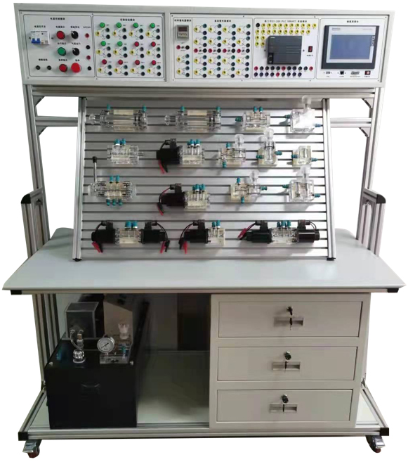 氣動液壓綜合實驗臺面向機電一體化、機械制造及自動化、機電一體化、電氣自動化等自動化類專業(yè)學(xué)生的《液壓與氣動技術(shù)》課程的教學(xué)與實訓(xùn)、同時提供面向企業(yè)的氣動技術(shù)項目培訓(xùn)。該裝置集理論實踐于一體,在產(chǎn)品結(jié)構(gòu)上由空壓機、實訓(xùn)臺、氣動元件、電氣元件組成,涵蓋氣動基本的執(zhí)行元件、氣閥元件及基本的氣動搭接回路實訓(xùn)的內(nèi)容,可使學(xué)生了解和掌握氣動元件的選型、應(yīng)用、設(shè)定、調(diào)節(jié),氣動基本回路的原理。幫助學(xué)生提高學(xué)習(xí)氣動基礎(chǔ)知識的興趣,方便教師課堂教學(xué),增加專業(yè)特色。實訓(xùn)室主要實訓(xùn)項目:氣動基本回路實驗實訓(xùn)、繼電器控制的氣動系統(tǒng)實驗實訓(xùn)、可編程序控制器(PLC)電氣控制實驗實訓(xùn)、機-電-氣一體化控制實驗實訓(xùn)、氣動系統(tǒng)創(chuàng)新設(shè)計組裝實訓(xùn)。 通過實驗實訓(xùn),讓學(xué)生更好地理解和掌握氣壓件結(jié)構(gòu)、形狀、作用和工作原理方面的知識,掌握常用的氣動回路作用、工作原理和使安裝調(diào)試方法,理論結(jié)合實際,提高動手能力,為將來從事與自動化專業(yè)相關(guān)的設(shè)計、制造、維修等工作打下良好的基礎(chǔ)。上海碩博弘揚大國工匠精神, 發(fā)展職業(yè)教育,應(yīng)用教學(xué)設(shè)備,為企業(yè)培養(yǎng)高技能人才,液壓實驗臺是以高?蒲谐晒a(chǎn)業(yè)化為背景,由教授、高級工程技術(shù)人員、高級管理人員為主體組成的,集研發(fā)、生產(chǎn)銷售于一體的企業(yè),專業(yè)提供液壓試驗臺,氣動實驗臺,液壓拆裝實訓(xùn)設(shè)備,氣動液壓綜合實驗臺。 液壓PLC控制實訓(xùn)裝置(工業(yè)型)、液壓元件拆裝實訓(xùn)裝置、透明液壓與氣動PLC控制綜合實訓(xùn)裝置、透明液壓與氣動PLC控制綜合實訓(xùn)裝置(組態(tài)軟件控制)、透明液壓PLC控制實訓(xùn)裝置(外帶泵站)、透明液壓PLC控制實訓(xùn)裝置(內(nèi)帶泵站)、透明液壓傳動PLC實訓(xùn)裝置(外帶泵站、組態(tài)軟件控制)、透明液壓傳動PLC實訓(xùn)裝置(內(nèi)帶泵站、組態(tài)軟件控制)、透明液壓PLC控制實訓(xùn)裝置(挖掘機實訓(xùn)臺)、透明液壓傳動演示系統(tǒng)、四合一透明液壓傳動演示系統(tǒng)、氣動PLC控制實訓(xùn)裝置、氣動PLC控制實訓(xùn)裝置(組態(tài)軟件控制)、液壓與氣動PLC控制綜合實訓(xùn)裝置(工業(yè)型)、液壓與氣動PLC控制綜合實訓(xùn)裝置(工業(yè)型組態(tài)軟件控制)、液壓PLC控制實訓(xùn)裝置(工業(yè)型)、液壓PLC控制實訓(xùn)裝置(工業(yè)型帶組態(tài)軟件控制)、液壓挖掘機PLC控制實訓(xùn)裝置(工業(yè)型)、液壓起重機PLC控制實訓(xùn)裝置(工業(yè)型)。