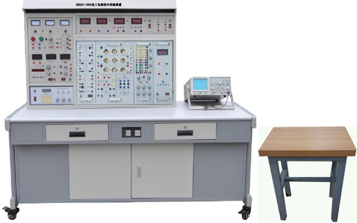實驗桌為鐵質(zhì)雙層亞光密紋噴塑結(jié)構(gòu),桌面為防火、防水、耐磨高密度板;左右設有兩個大抽屜(帶鎖),用于放置工具及資料。右邊設有放置示波器用的可拆卸擱板。
