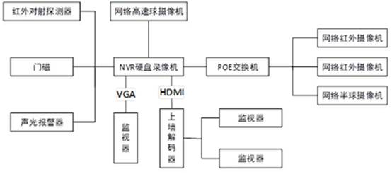 系統(tǒng)配置有高速球云臺攝像機、一體化槍型攝像機、紅外攝像機、室內(nèi)全方位云臺、矩陣主機、彩色監(jiān)視器、硬盤錄像機等器件,可進行器件的選擇、檢測和安裝。完成視頻監(jiān)控系統(tǒng)的線路鋪設(shè)和連接。通過系統(tǒng)模塊的參數(shù)設(shè)置和編程,實現(xiàn)監(jiān)視器的視頻監(jiān)控、畫面切換和報警聯(lián)動錄像等功能。