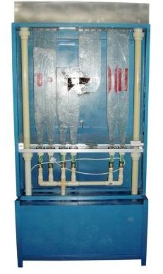 主要配置:循環(huán)水箱;水泵;溢流槽;扁氺槽及工件;鋼制角鐵支架;銅閥門調(diào)節(jié)組。