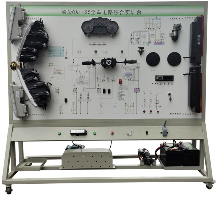 解放CA1125全車電路綜合實(shí)訓(xùn)設(shè)備采用解放CA1125J柴油機(jī)整車電器實(shí)物為基礎(chǔ),充分展示汽車儀表系統(tǒng)、燈光系統(tǒng)、雨刮系統(tǒng)、喇叭系統(tǒng)、發(fā)動(dòng)機(jī)電器系統(tǒng)、起動(dòng)系統(tǒng)和充電系統(tǒng)等汽車電器各系統(tǒng)的組成結(jié)構(gòu)和工作過(guò)程。