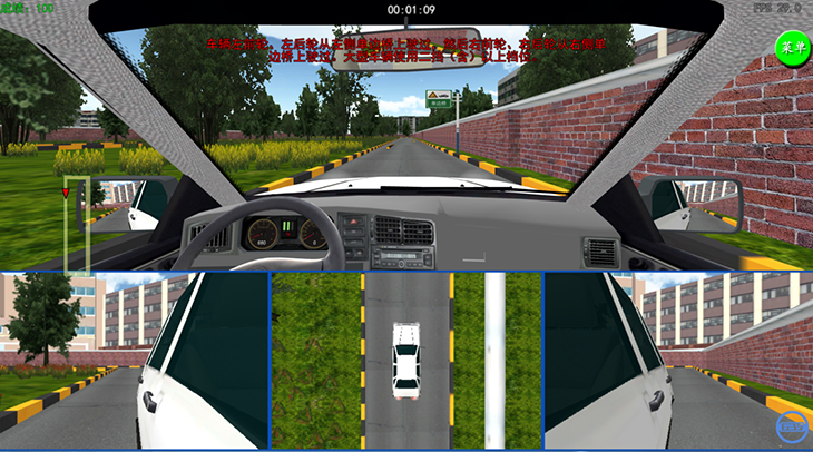 3)具有座艙和顯示器的互動視景系統(tǒng),并具有錯誤駕駛記錄和提示功能。互動視景系統(tǒng)應(yīng)具備圖形工作站、顯示設(shè)備、音響功放等組成,可實現(xiàn)駕駛員前景140度以上視角的屏幕顯示。
