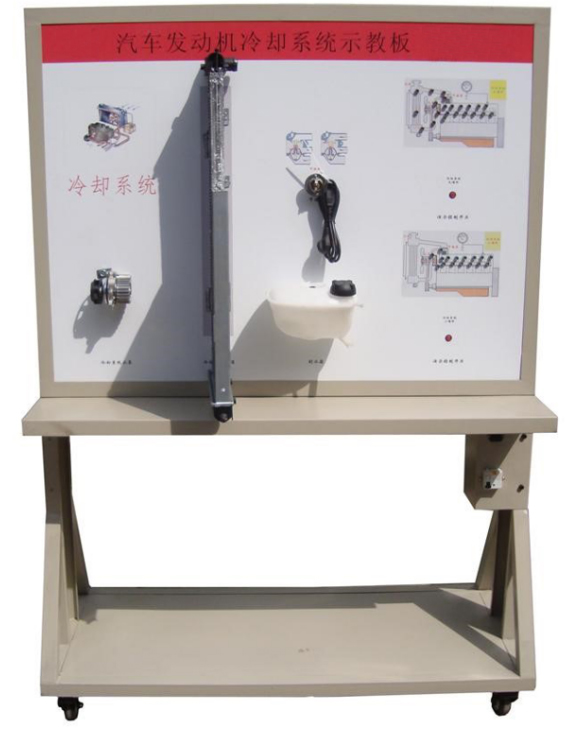 2.示教板面板采用耐創(chuàng)擊、耐污染、防火、防潮的高級(jí)鋁塑板,表面經(jīng)特殊工藝噴涂底漆處理;面板打印有永不褪色的彩色電路圖與工作原理示意圖;學(xué)員可直觀對照發(fā)動(dòng)機(jī)冷卻系統(tǒng)結(jié)構(gòu)原理圖和實(shí)物,認(rèn)識(shí)和分析發(fā)動(dòng)機(jī)冷卻系統(tǒng)的工作原理。