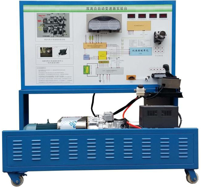 該設(shè)備采用翻新邁騰B8L 2021款電控雙離合器自動(dòng)變速器總成為基礎(chǔ),可調(diào)速三相異步電動(dòng)機(jī)做動(dòng)力源,對(duì)雙離合器自動(dòng)變速器進(jìn)行檔位顯示、空檔起動(dòng)、前進(jìn)檔及倒檔運(yùn)行等工況實(shí)踐操作。真實(shí)展示電控雙離合器自動(dòng)變速器組成結(jié)構(gòu)和工作過程。