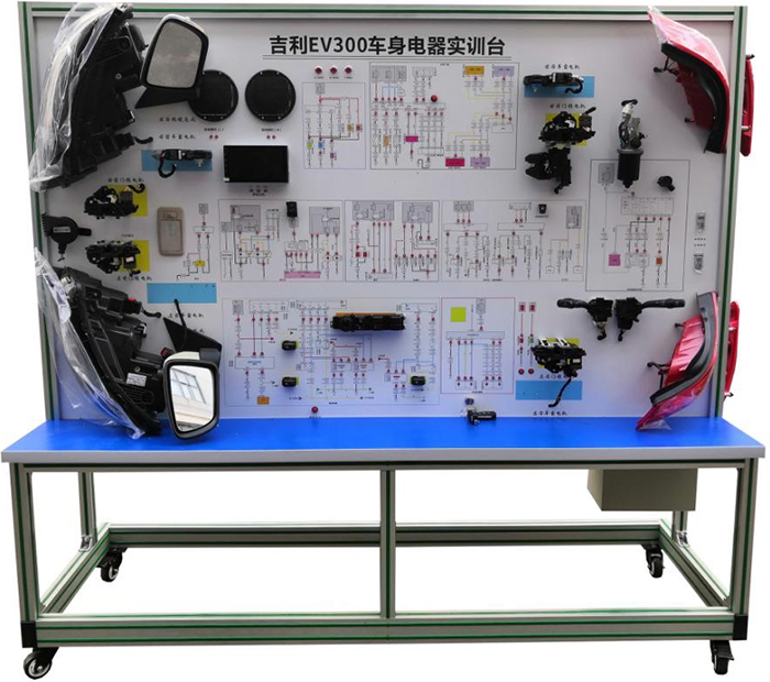 車身電器實訓(xùn)臺該設(shè)備采用(高速)純電動汽車車身電器系統(tǒng)實物為基礎(chǔ),充分展示純電動汽車儀表系統(tǒng)、燈光系統(tǒng)、雨刮系統(tǒng)、喇叭系統(tǒng)、低壓電源電器系統(tǒng)、電動車窗系統(tǒng)、電動門鎖、音響系統(tǒng)等低壓電器系統(tǒng)的組成結(jié)構(gòu)和工作過程。適合于各類院校對純電動車車身電器系統(tǒng)理論和維修實訓(xùn)的拆裝與維護、結(jié)構(gòu)與原理認(rèn)知、系統(tǒng)操作、功能動態(tài)演示、故障檢測與診斷教學(xué)需要。