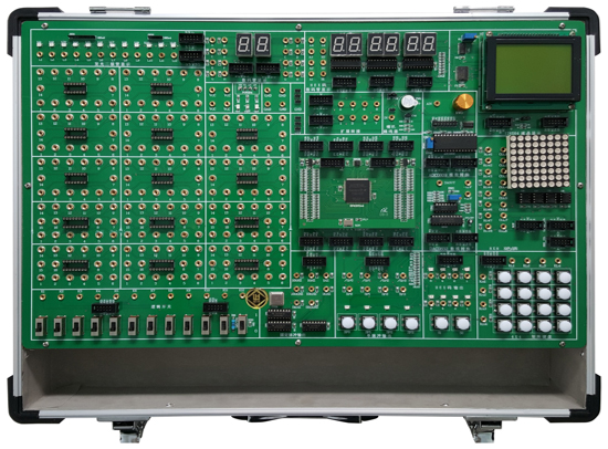 數(shù)字電路、EDA技術(shù)實(shí)驗(yàn)設(shè)計(jì)由鋁木合金箱體、開關(guān)電源、常用信號源、常用模數(shù)接口、人機(jī)接口、接插式FPGA下載板和實(shí)驗(yàn)電路區(qū)等組成。其中信號源由高性能單片機(jī)產(chǎn)生,穩(wěn)定可靠。全部的實(shí)驗(yàn)用信號線的連接采用高可靠杜邦線和單根2號插針線,避免接觸不良現(xiàn)象反生。擴(kuò)展設(shè)計(jì)的CPLD/FPGA開發(fā)板為用戶開展創(chuàng)新設(shè)計(jì)提供了良好的硬件平臺。本實(shí)驗(yàn)箱適用于本專科院校所有電類和非電類專業(yè)《數(shù)字電子技術(shù)》、《數(shù)字系統(tǒng)設(shè)計(jì)》、《EDA技術(shù)設(shè)計(jì)》等課程的實(shí)驗(yàn)、實(shí)訓(xùn)和創(chuàng)新設(shè)計(jì),有出版社出版的配套教材。