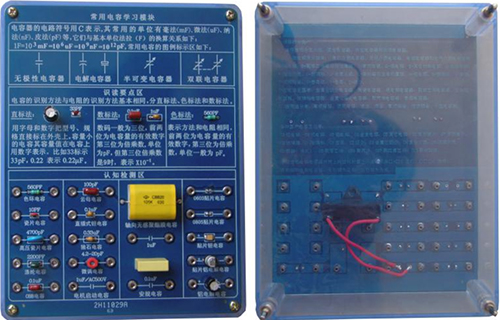 認(rèn)知檢測(cè)區(qū):提供色環(huán)電容、普通瓷片電容、高壓瓷片電容、滌綸電容、CBB電容、云母電容、直插式鉭電容、獨(dú)石電容、電解電容、微調(diào)電容、CBB61電機(jī)啟動(dòng)電容、CBB20軸向無感聚酯膜電容、安規(guī)電容等若干典型通用電容;同時(shí)還按照封裝提供0603及0805貼片電容、貼片鋁電解電容、貼片鉭電容等若干貼片電容。