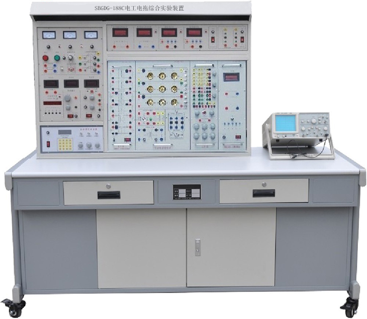 電工電子實(shí)驗(yàn)臺(tái)“通用電工實(shí)驗(yàn)設(shè)備”是根據(jù)職業(yè)學(xué)校、技工學(xué)校、中等專業(yè)學(xué)校的電工技術(shù)基礎(chǔ)、電工技能訓(xùn)練、電工學(xué)等有關(guān)教學(xué)實(shí)驗(yàn)大綱的要求而設(shè)計(jì)的。內(nèi)容有直流電路、交流電路、正弦與正弦電路、磁與電磁。該裝置符合勞動(dòng)部、機(jī)電部頒發(fā)的中級(jí)技術(shù)工人考核標(biāo)準(zhǔn)電工部分的內(nèi)容,是理論學(xué)習(xí)、實(shí)驗(yàn)驗(yàn)證、技能訓(xùn)練為一體的現(xiàn)代化電工實(shí)驗(yàn)成套設(shè)備。電工電子實(shí)驗(yàn)臺(tái)培養(yǎng)學(xué)生了解和掌握電子元器件及電工電子基本原理的能力,培養(yǎng)學(xué)生熟練使用電子儀器儀表的能力,為今后的專業(yè)實(shí)驗(yàn)、實(shí)訓(xùn)打下堅(jiān)實(shí)的基礎(chǔ)。電工電子實(shí)驗(yàn)室主要儀器設(shè)備:電工電子實(shí)驗(yàn)臺(tái)、常用儀器儀表等。電工電子實(shí)驗(yàn)臺(tái)主要實(shí)驗(yàn)或?qū)嵱?xùn)項(xiàng)目:分別開設(shè)強(qiáng)電和弱電的課程實(shí)驗(yàn)和課程設(shè)計(jì)。實(shí)驗(yàn)涉及課程包括電工學(xué)、模擬電路技術(shù)和數(shù)字電路技術(shù),主要實(shí)訓(xùn)課程有常用半導(dǎo)體材料及伏安特性的測(cè)試、集成放大電路、直流穩(wěn)壓電路、示波器的使用、數(shù)碼顯示電路、集成觸發(fā)器特性、555定時(shí)器、單穩(wěn)態(tài)觸發(fā)器、等非電類專業(yè)基礎(chǔ)實(shí)驗(yàn)課。通過驗(yàn)證性、設(shè)計(jì)性相結(jié)合的實(shí)驗(yàn)項(xiàng)目,使學(xué)生掌握基本電路模塊的設(shè)計(jì)、測(cè)試技術(shù),通過理論知識(shí)分析實(shí)驗(yàn)現(xiàn)象和排除故障的過程,使學(xué)生了解了系統(tǒng)設(shè)計(jì)與工程設(shè)計(jì)過程,提高了學(xué)生的實(shí)際動(dòng)手能力。電工電子實(shí)驗(yàn)臺(tái)、電子綜合實(shí)訓(xùn)設(shè)備,同時(shí)包含示波器、數(shù)字萬用表等配套設(shè)備?砷_設(shè)我校醫(yī)學(xué)影像技術(shù)專業(yè)和醫(yī)用電子儀器與維護(hù)專業(yè)的《電子學(xué)基礎(chǔ)》、 《電工技術(shù)》、 《模擬電子技術(shù)》及《數(shù)字電子技術(shù)》等工學(xué)基礎(chǔ)類課程的實(shí)驗(yàn)實(shí)訓(xùn)。