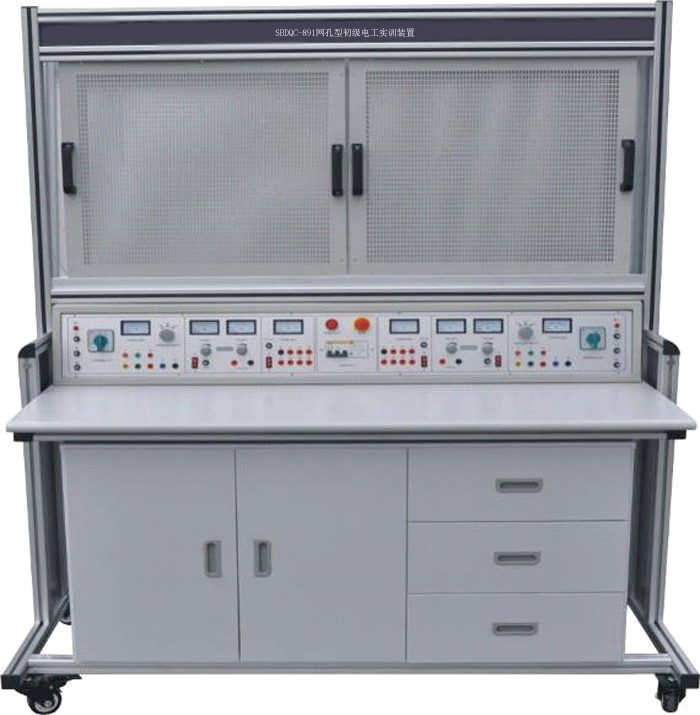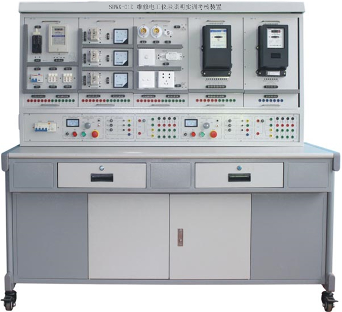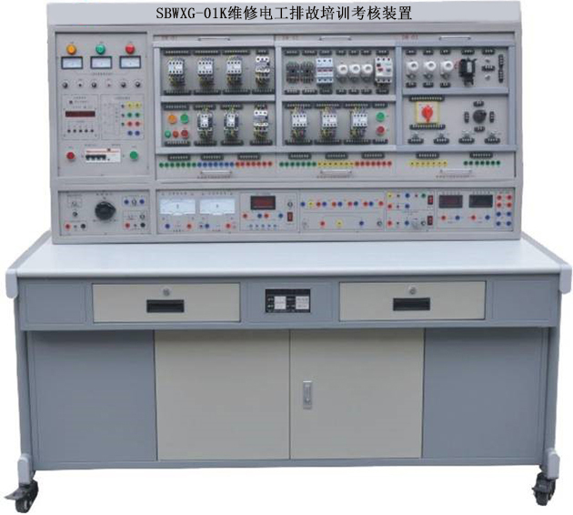 初級(jí)維修電工實(shí)訓(xùn)室設(shè)備可作為維修電工考核裝置,有可在網(wǎng)孔板上進(jìn)行照明器件及線路的安裝,電工儀表測量線路的安裝、電工儀表測量線路的安裝、配電盤的裝配訓(xùn)練,電動(dòng)機(jī)的控制線路安裝訓(xùn)練。