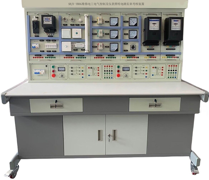 電氣教學(xué)實訓(xùn)實驗臺、《電氣工程實驗實訓(xùn)臺》是電氣工程及其自動化專業(yè)學(xué)生的一門核心專業(yè)實踐課程。通過實訓(xùn),使學(xué)生系統(tǒng)掌握常用電工工具、電工儀器儀表的使用,初步具備常用高低壓電器的安裝與維修、基本電氣控制電路的設(shè)計、安裝、調(diào)試和排除故障能力,獲得PLC控制方面的基本訓(xùn)練,培養(yǎng)學(xué)生動手能力、獨立分析和解決一般技術(shù)問題的能力、團隊協(xié)作的意識和實事求是的工作態(tài)度,為以后從事本專業(yè)的工作打下基礎(chǔ)。