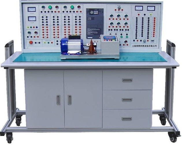 變頻器實訓(xùn)裝置由控制屏、實訓(xùn)桌、變頻實訓(xùn)組件、繼電接觸實訓(xùn)組件、數(shù)字量/模擬量輸入輸出給定指示組件、三相異步電機、電機導(dǎo)軌、測速機構(gòu)等組成。