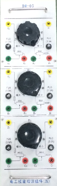 掛箱上已安裝有熔斷器、鈕子開關(guān)、交流接觸器、時間繼電器、直流接觸器、按鈕開關(guān)、信號指示燈、熱繼電器等,所有器件均采用國內(nèi)外知名品牌。各種實訓(xùn)元器件的接線都在接線端子排上進行接線,避免了因長期在器件本身進行螺絲拆裝而導(dǎo)致元器件的損耗,通過走線槽走線,進行工藝布線訓(xùn)練。實訓(xùn)電路與裝置電源的連接通過安全插座和高可靠護套結(jié)構(gòu)手槍插連接線,安全快捷。